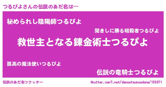 | 男性向けラノベタイトル風あだ名 | 『ノーゲーム・ノーツルピヨ』 |