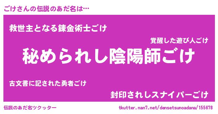 | 女子向けラノベタイトル風あだ名 | 『ごけの雑貨屋さん』『死神ごけの再婚』 |