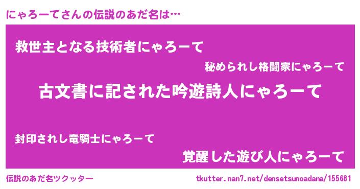| ヒーロー風カッコイイあだ名 | 『ネオニャローテ』『愛の使者にゃろーて』 |