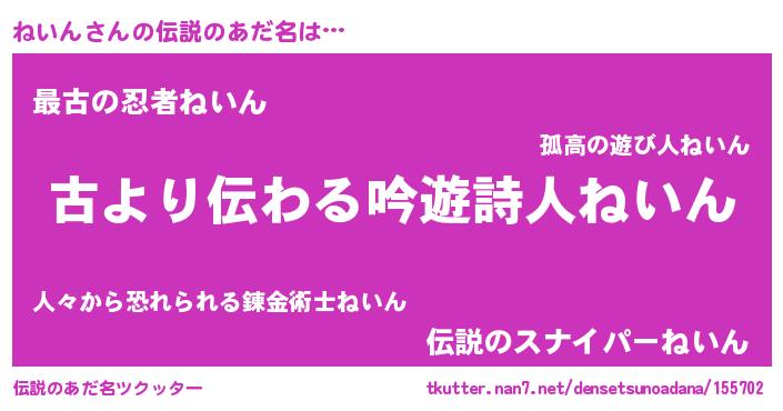 | ファンタジー風あだ名 | 『ネイディッシュ』『エターナルネインー』 |
