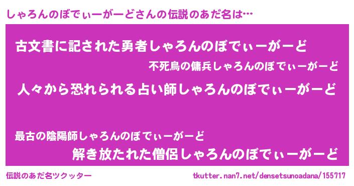 | 欧米人風あだ名 | 『ケンブリッジしゃろんのぼでぃーがーど』 |