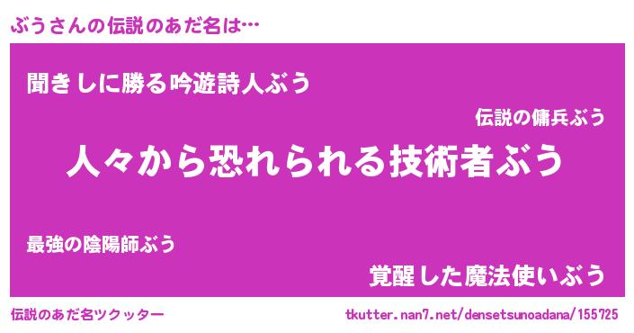 | 男性向けラノベタイトル風あだ名 | 『魔法科高校のぶう』 |