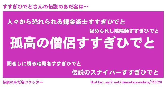 | 男性向けラノベタイトル風あだ名 | 『緋弾のススギヒデト』 |