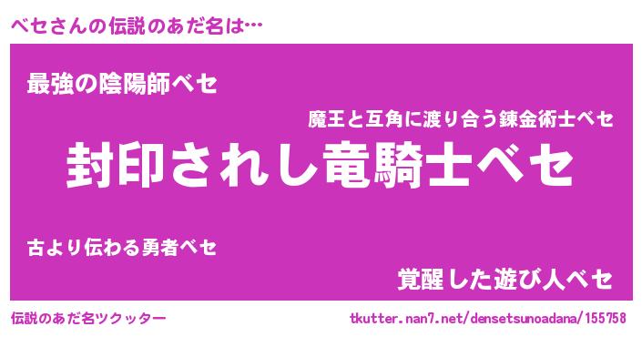 | 意味不明あだ名 | 『住所不定無職ベセ(13歳)』『ペロリンベセ』 |