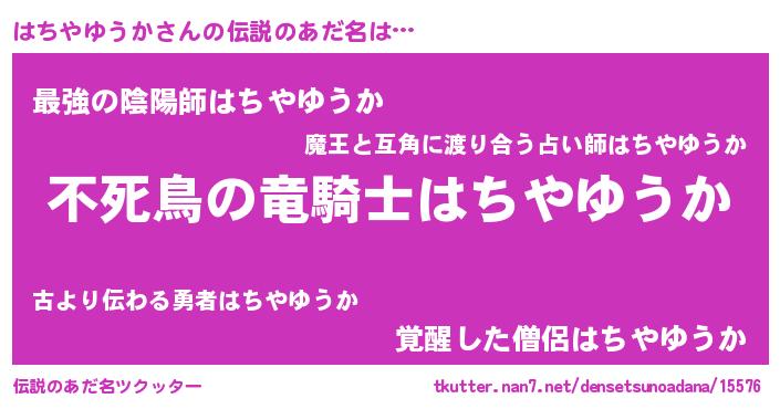 | 女子向けラノベタイトル風あだ名 | 『はちやゆうか姫と円卓の騎士』 |