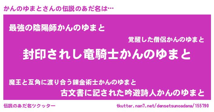 | 男性向けラノベタイトル風あだ名 | 『この素晴らしい世界にかんのゆまとを!』 |