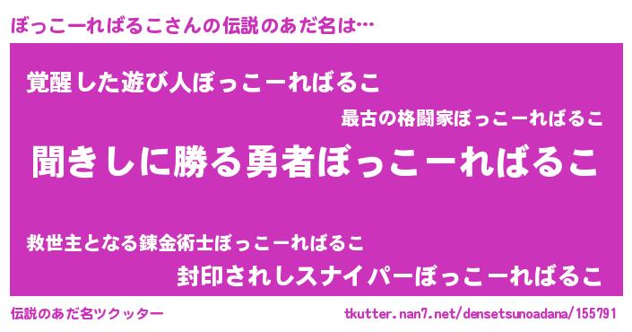 | 意味不明あだ名 | 『永久保存ぼっこーればるこ』 |