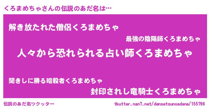 | ヒーロー風カッコイイあだ名 | 『正義の使者くろまめちゃ』 |