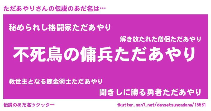 | ヒーロー風カッコイイあだ名 | 『ウルトラ戦士タダアヤリ』 |