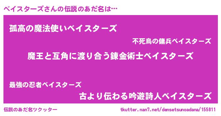| ヒーロー風カッコイイあだ名 | 『愛の使者ベイスターズ』『暗黒騎士ベイ』 |
