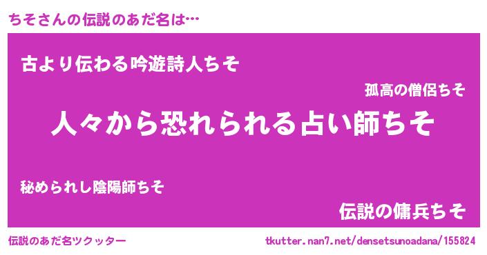 | ヒーロー風カッコイイあだ名 | 『正義の使者ちそ』『ネオチソ』 |