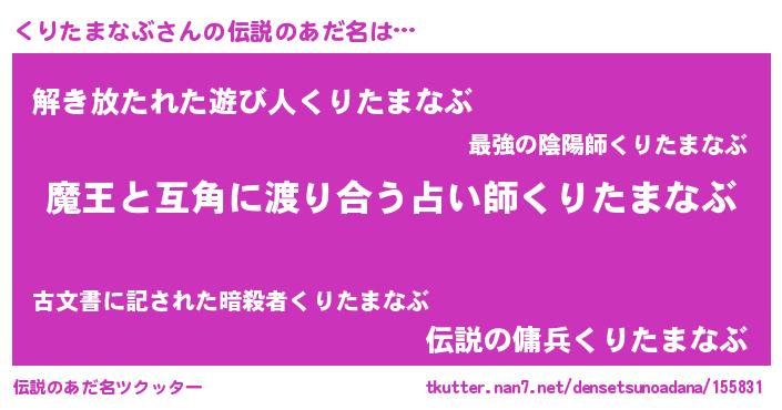 | ヒーロー風カッコイイあだ名 | 『慈愛の使者くりたまなぶ』 |