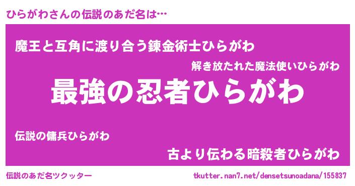 | 意味不明あだ名 | 『ひらがわフォーエバー』『自称ひらがわ』 |