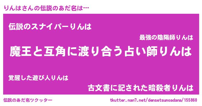 | 意味不明あだ名 | 『住所不定無職りんは(47歳)』『自称りんは』 |