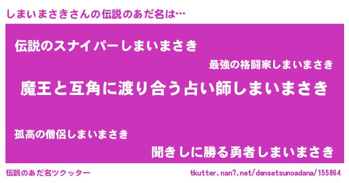 | ヘコむあだ名 | 『しまもー』『しまいまさき(震え声)』 |