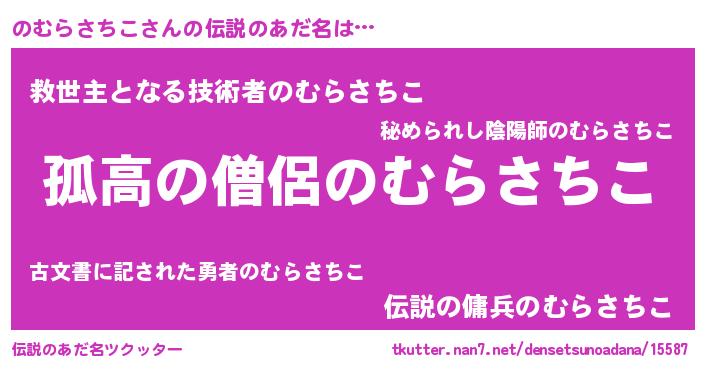 | 男性向けラノベタイトル風あだ名 | 『魔弾の王とのむらさちこ』 |