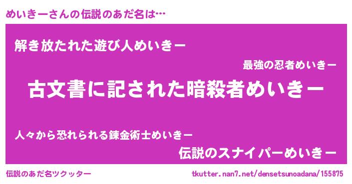 | ヒーロー風カッコイイあだ名 | 『ネオメイキー』『サイバー戦士メイキー』 |