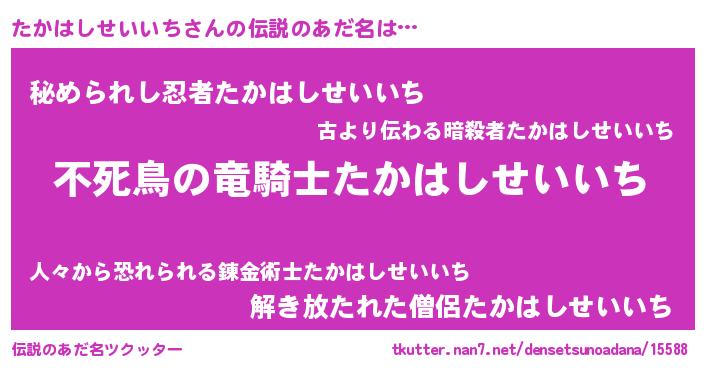 | 女子向けラノベタイトル風あだ名 | 『たかはしせいいち姫と円卓の騎士』 |