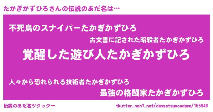 | 意味不明あだ名 | 『とにかく怪しいたかぎかずひろ』 |