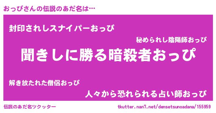 | 男性向けラノベタイトル風あだ名 | 『オッピスレイヤー』『おっぴの憂鬱』 |