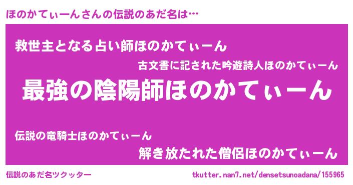 | 胡散臭い通販商品みたいなあだ名 | 『あなたにだけ特別に提供する世界で10本だけ現存している希少なブランデー…その名も「ほのかてぃーん」』 |