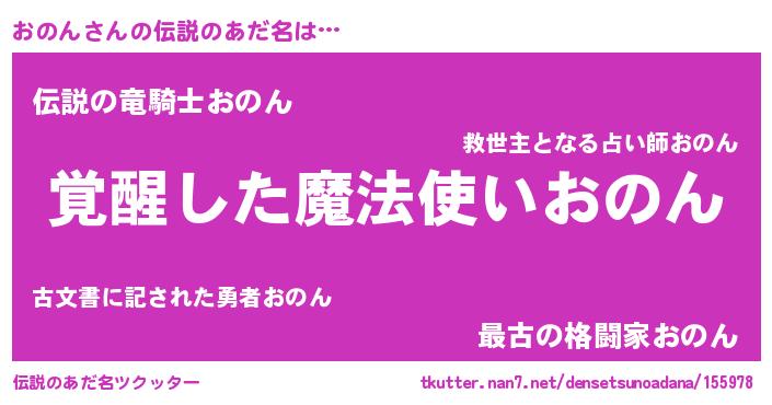 | 意味不明あだ名 | 『とにかく怪しいおのん』 |