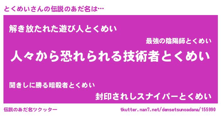 | ヒーロー風カッコイイあだ名 | 『正義の使者とくめい』『幻影騎士トク』 |