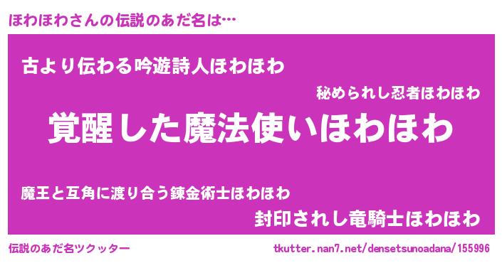 | ヒーロー風カッコイイあだ名 | 『最強戦士ホワホワ』『魔戒騎士ホワ』 |