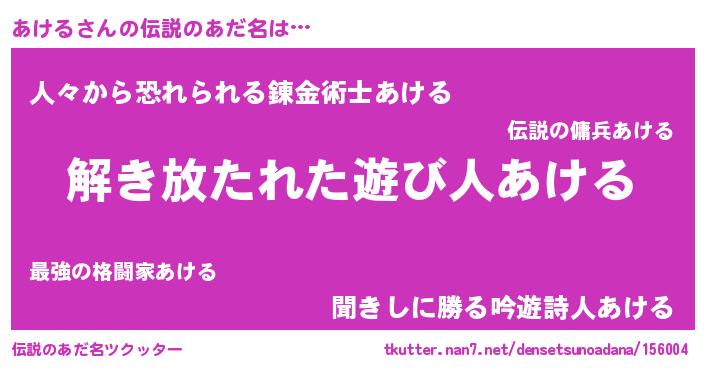 | ヒーロー風カッコイイあだ名 | 『最強戦士アケル』『暗黒騎士アケ』 |