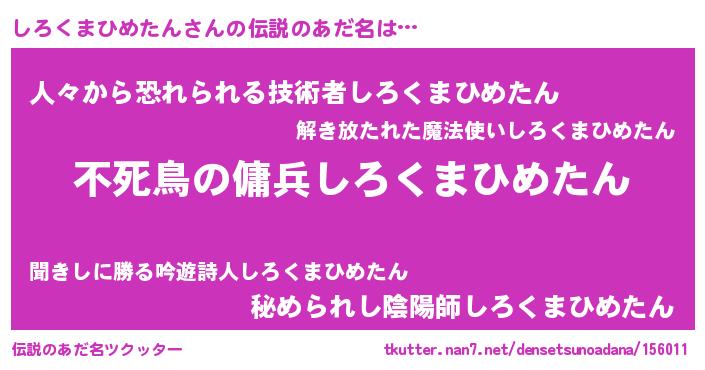 | ヒーロー風カッコイイあだ名 | 『スーパーシロクマヒメタン』 |