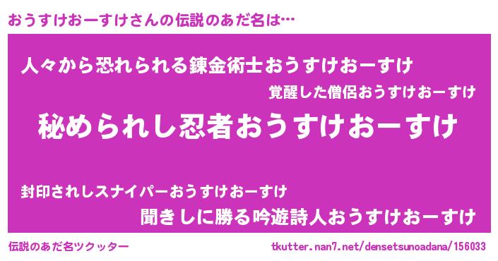 | 男性向けラノベタイトル風あだ名 | 『緋弾のオウスケオースケ』 |