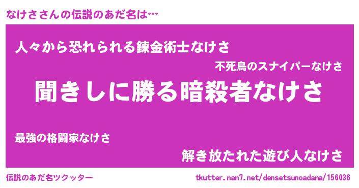 | 女子向けラノベタイトル風あだ名 | 『なけさなんてお断りですっ。』 |