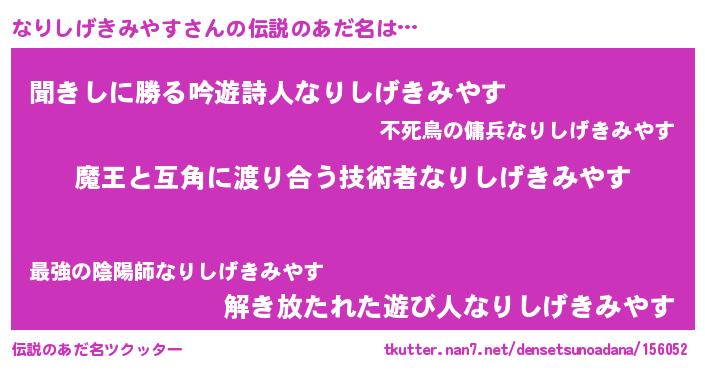 | ヘコむあだ名 | 『なりしげきみやす(笑)』『なりお』 |
