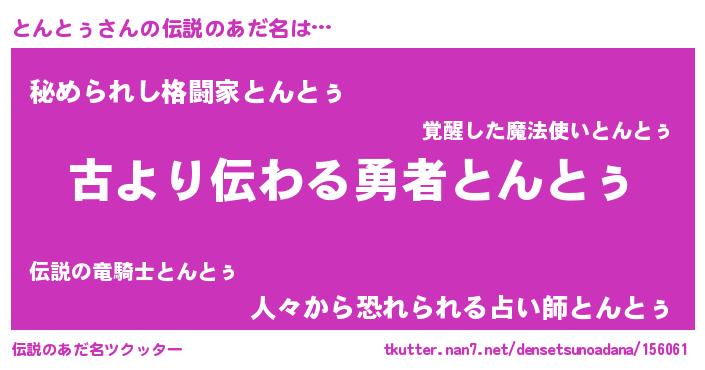 | 意味不明あだ名 | 『永久保存とんとぅ』『自称とんとぅ』 |