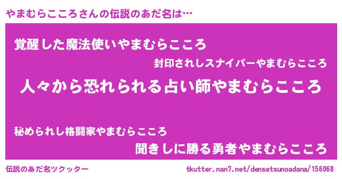 | 男性向けラノベタイトル風あだ名 | 『おまえをオタクにしてやるから、俺をやまむらこころにしてくれ! 』 |