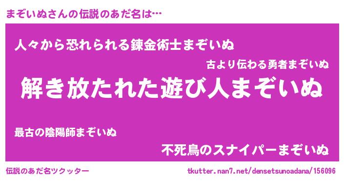 | 男性向けラノベタイトル風あだ名 | 『まぞいぬに滅ぼされるだけの簡単なお仕事です』 |