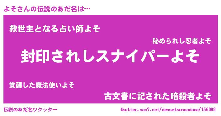 | 胡散臭い通販商品みたいなあだ名 | 『億万長者になれる霊験あらたかなお札…その名も「よそ」』 |