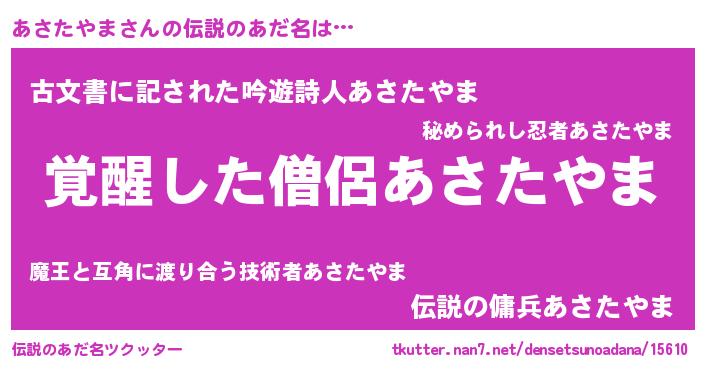 | 意味不明あだ名 | 『とにかく怪しいあさたやま』 |