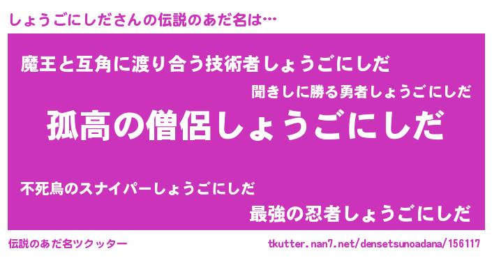 | 欧米人風あだ名 | 『ケンブリッジしょうごにしだ』 |