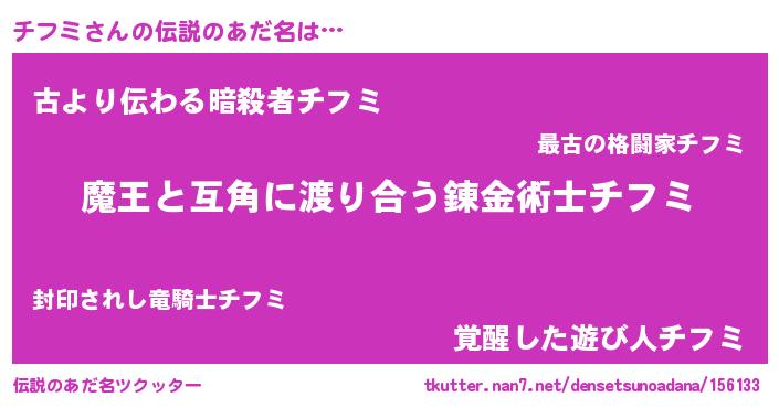 | ヘコむあだ名 | 『チフミ(苦笑)』『チフを』 |
