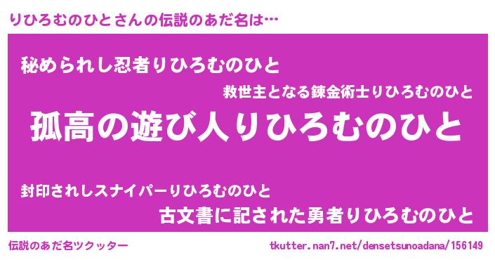 | 意味不明あだ名 | 『とにかく怪しいりひろむのひと』 |