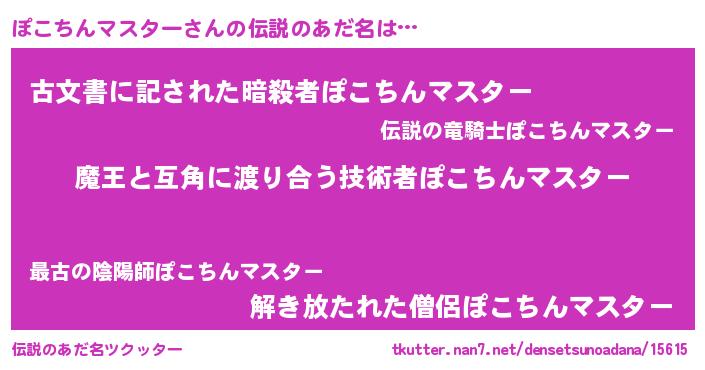 | ヒーロー風カッコイイあだ名 | 『愛の使者ぽこちんマスター』 |