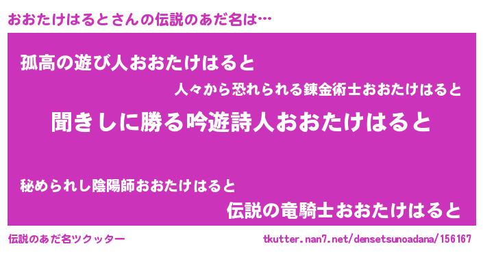 | ヒーロー風カッコイイあだ名 | 『ネオオオタケハルト』『魔戒騎士オオ』 |