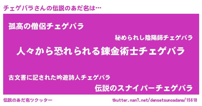 | ヒーロー風カッコイイあだ名 | 『正義の使者チェゲバラ』『暗黒騎士チェ』 |