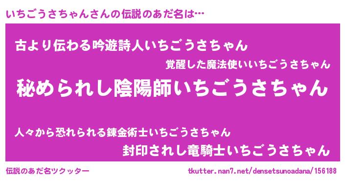 | 欧米人風あだ名 | 『いちごうさちゃんクリステル』 |