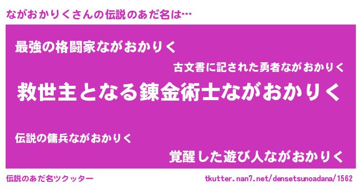 | ヒーロー風カッコイイあだ名 | 『慈愛の使者ながおかりく』 |