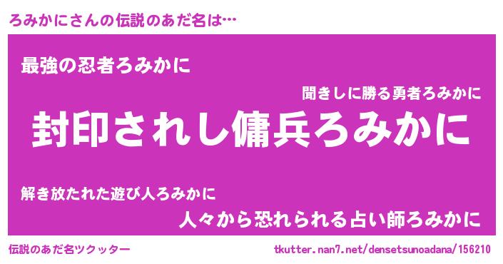 | 肩書あだ名 | 『ろみかに総統』『ろみかに教官』 |