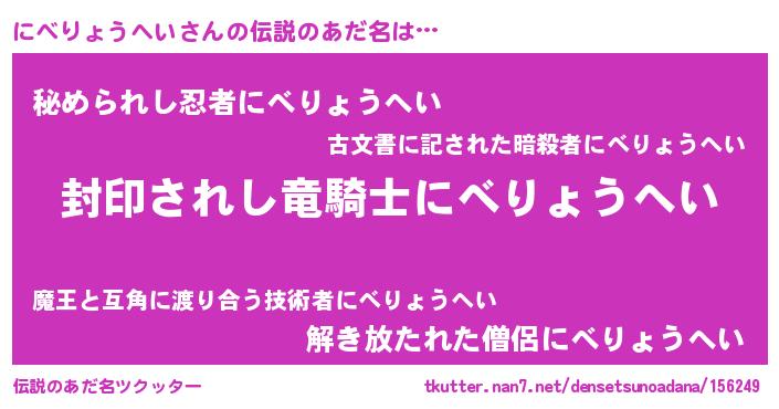 | 恥ずかしいあだ名 | 『プリティーにべりょうへい』『にべちん』 |