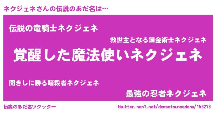 | 意味不明あだ名 | 『とにかく怪しいネクジェネ』 |