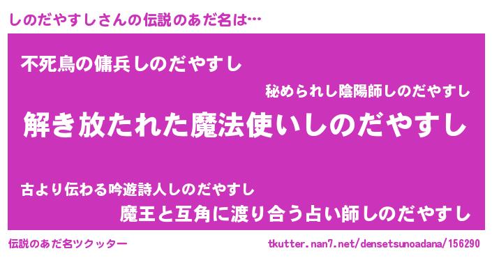 | ヒーロー風カッコイイあだ名 | 『幻影騎士シノ』『スーパーシノダヤスシ』 |
